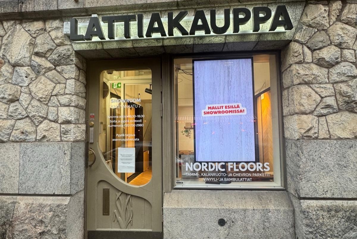 Helsingin showroom on alle 30 m² kokoinen tila, jossa on esillä myydyimmät lattiamallimme. Showroomissa ovat saatavilla kaikki mallipalat koko tuotevalikoimastamme. Tila on auki ympäri vuorokauden, sisään pääset ovikoodilla. Ota yhteyttä asiakaspalveluumme saadaksesi koodin.